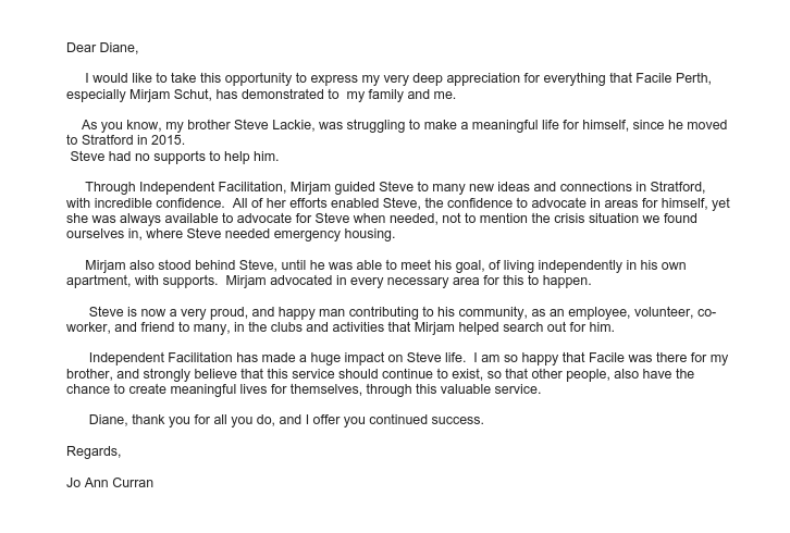 Thank you so much to Jo Ann for sending this letter to Facile Futures and for allowing it to be shared!