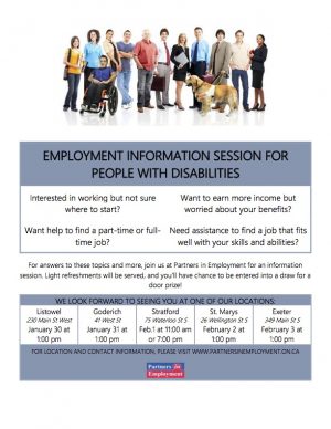 Partners in Planning are hosting a number of information sessions designed for people who are seeking employment and experience a disability. See the attached poster for more information!